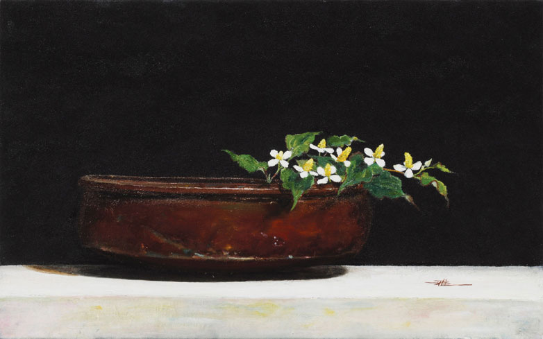 『ドクダミ』 M10号 2009年小さな野の花たちは四季折々、見る人の心を温かくするように一生懸命咲きつづけています。