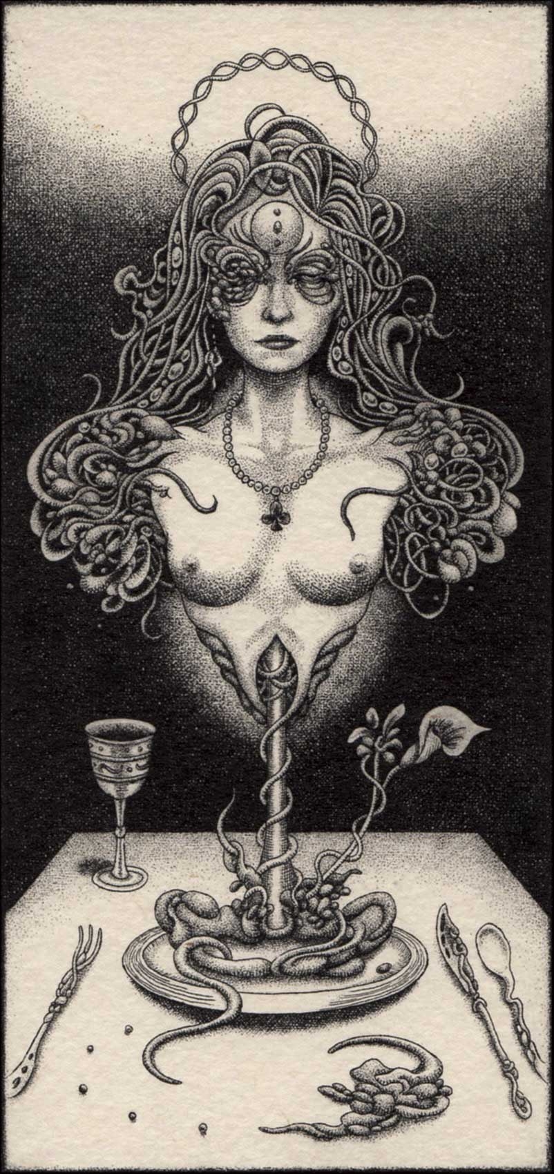 銅版画のエッチングという技法の黒インクの質感に魅了され制作を続けている